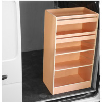 Le casier étagères inclinées en bois sans bacs est fabriqué en contreplaqué de 15 mm et son vernis incolore, teinté Okoumé ou gris clair à choisir dans le menu déroulant offre plusieurs fonctionnalités. Il est équipé de 1 étagère, 1 bandeau amovible et 5 étagères inclinées dont 4 interchangeables. Ce meuble s'adapte parfaitement au Mercedes Sprinter...