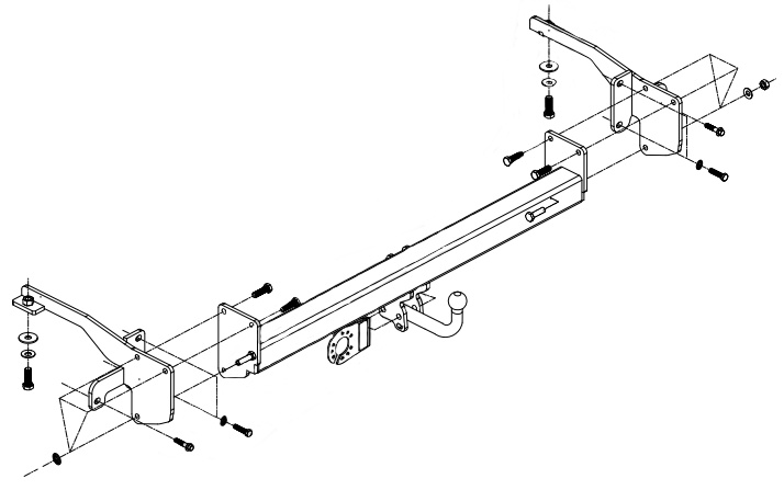 Attelage de marque Umbra Rimorchi, de type col de cygne démontable avec outil. Ce kit comprend la ferrure d'attelage, la boulonnerie complète et la boule. Le kit électrique est à commander directement dans la fiche technique de l'article.