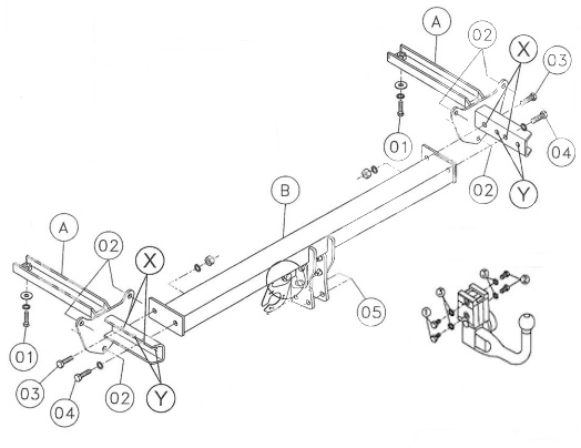 Attelage de marque Umbra Rimorchi, de type rotule verticale démontable sans outil. Ce kit comprend la ferrure d'attelage, la boulonnerie complète et la boule. Le kit électrique est à commander directement dans la fiche technique de l'article.