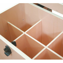 Découvrez notre casier de rangement en bois, il est conçu pour s'intégrer parfaitement sur le côté latéral droit ou gauche de votre utilitaire. Il est fabriqué en contreplaqué de peuplier de 15 mm avec finition vernie incolore, teinte Okoumé ou teinte gris clair à choisir dans le menu déroulant, ce qui lui confère une grande robustesse.