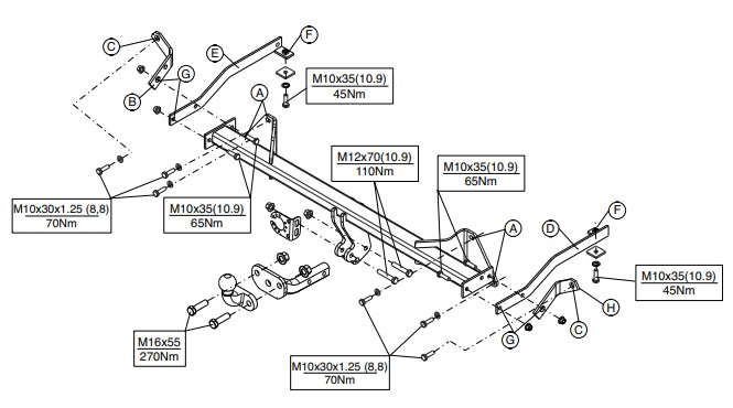 Attelage de marque Brink, de type boule standard démontable avec outil. Ce kit comprend la ferrure d'attelage, la boulonnerie complète et la boule. Le kit électrique est à commander directement dans la fiche technique de l'article. Incompatible avec fourgons aménagés et camping car.