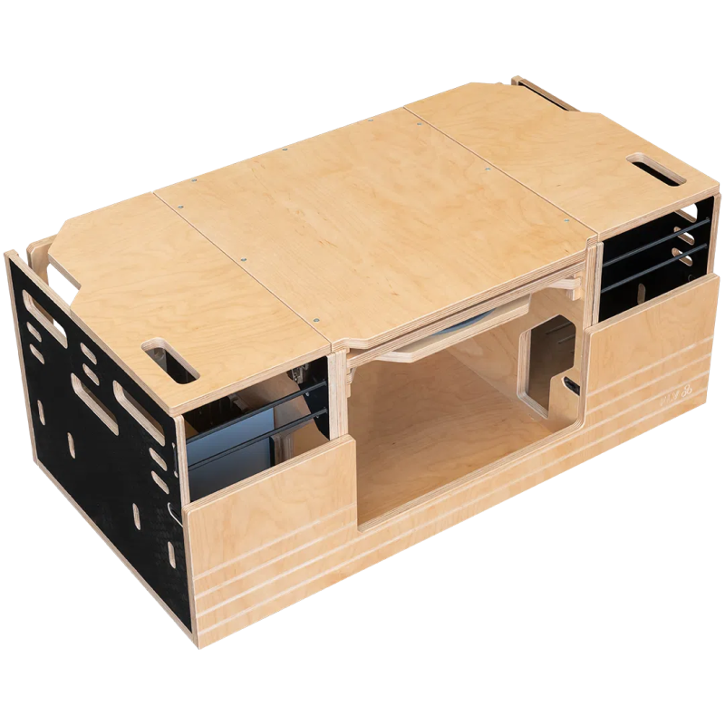 En seulement 5 minutes ce kit d’aménagement amovible s’installe très facilement sans outils dans votre véhicule de tous les jours. Cette malle de voyage amovible est conçue pour dormir, cuisiner et bivouaquer en toute simplicité.