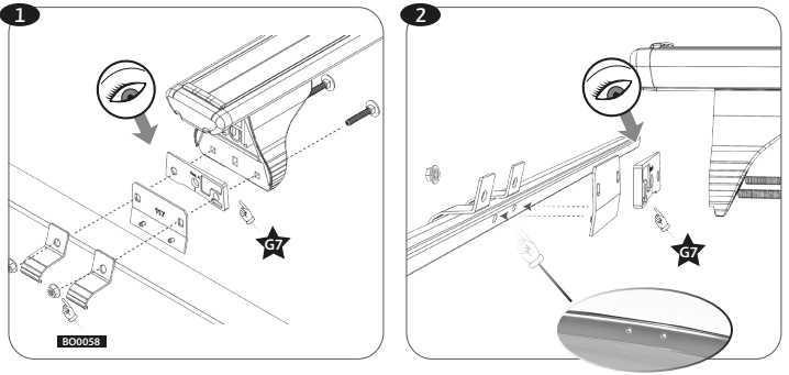 Pour fixer les barres sur le toit de votre véhicule, ce système Pool Line reprend les points de fixations prévus d'origine sur le pavillon.