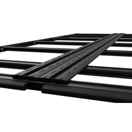 Galerie Monobloc Extra Plate 105mm hors tout en aluminium noir + kit fixations pour Fiat Ducato L1H1 avec Portes Battantes à partir de Juin 2006