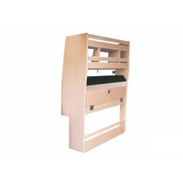 Découvrez notre casier de rangement en bois, il est conçu pour s'intégrer parfaitement à l'arrière droit de votre utilitaire. Il est fabriqué en contreplaqué de peuplier de 15 mm avec finition vernie incolore, teinte Okoumé ou teinte gris clair à choisir dans le menu déroulant, ce qui lui confère une grande robustesse.