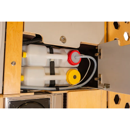 Le Kit d’aménagement Hive Box Bumble Bee possède un espace de cuisine sur glissière, 3 casiers de rangement et un plan de travail.