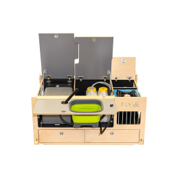 Le Kit d’aménagement Hive Box Bumble Bee possède un espace de cuisine sur glissière, 3 casiers de rangement et un plan de travail.
