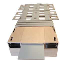 En seulement 5 minutes ce kit d’aménagement amovible s’installe très facilement sans outils dans votre véhicule de tous les jours. Cette malle de voyage amovible est conçue pour dormir, cuisiner et bivouaquer en toute simplicité.