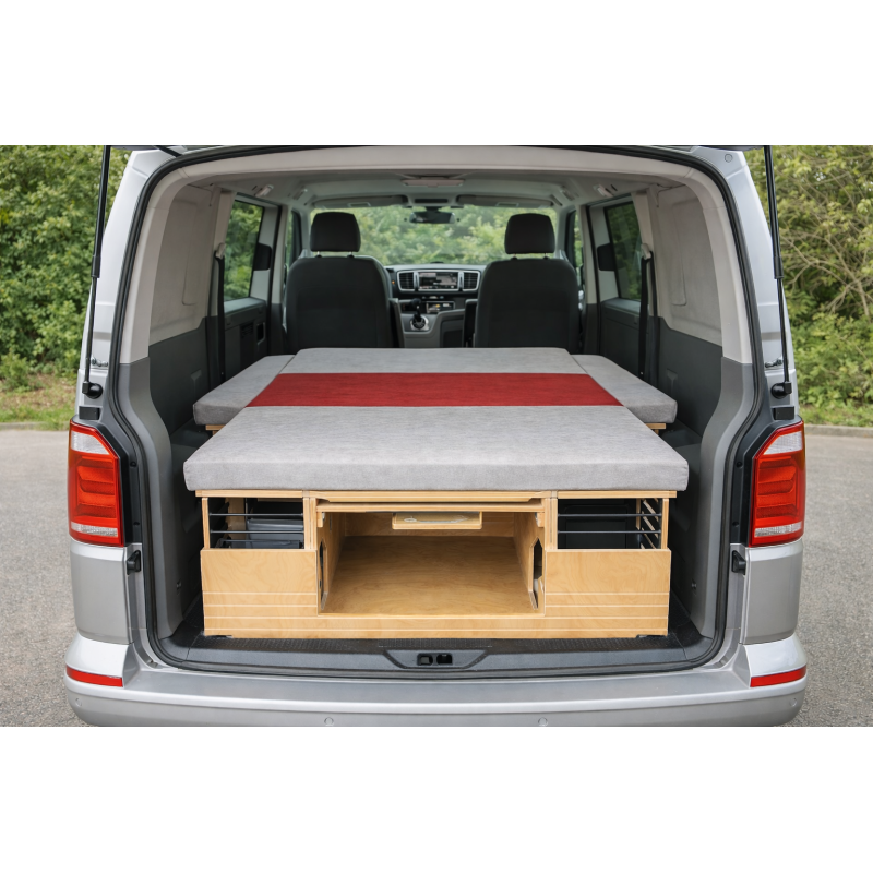 Afin de pouvoir dormir dans votre véhicule, vous pouvez ajouter en option le sommier et sa structure de lit disponible en deux versions (simple ou double).Â