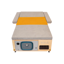 L’option caisson + structure de lit + table permet d’obtenir 2 places assises supplémentaires, un vaste espace de rangement, une table intérieure / extérieur avec son pied indépendant qui se transforme une fois en position basse en un sommier de 2 personnes pouvant accueillir en option le matelas de 1250 x 950 mm.Â