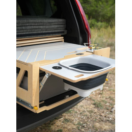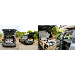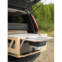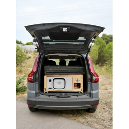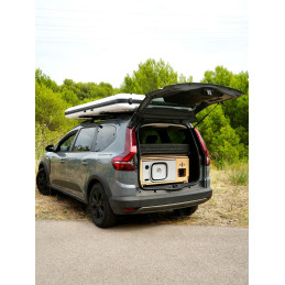 Kit aménagement amovible (grand tiroir de cuisine et plan de travail), Cette box convertit votre Dacia Logan Break en un mini camping-car.