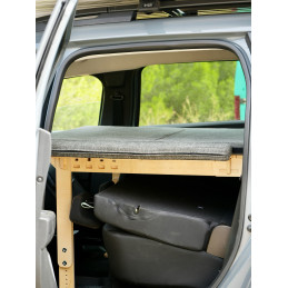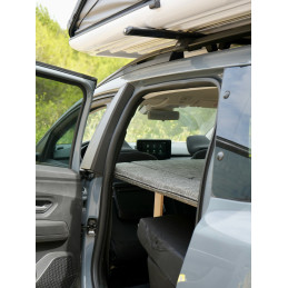 Afin de pouvoir dormir dans votre véhicule, il vous suffit de rabattre la banquette arrière et d’ajouter en option le sommier et sa structure de lit réglable. Ce système de lit peigne permet d’obtenir un couchage de 900x1750 mm mini et jusqu’à 1200x1900 mm maxi.Â