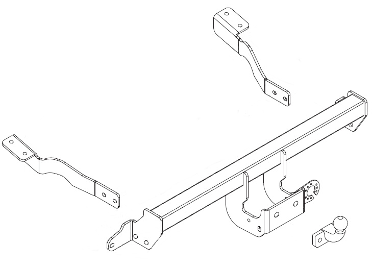 Attelage de marque Umbra Rimorchi, de type boule standard démontable avec outil. Ce kit comprend la ferrure d'attelage, la boulonnerie complète et la boule. Le kit électrique est à commander directement dans la fiche technique de l'article.