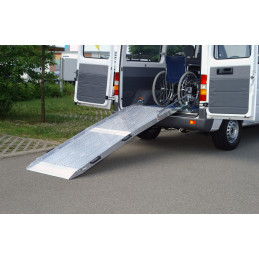 Cette rampe en aluminium est repliable et pivote à 180°. La rampe est montée sur un pivot, ce qui permet de l’orienter vers l’intérieur ou vers l’extérieur. Rampes pour véhicules Traction Roues Simples uniquement. La sélection des dimensions de la rampe se fait dans la fiche technique du produit.