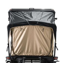 La tente de toit Bush Cruiser est extrêmement simple à utiliser. L’ouverture est automatique et assistée par vérin, la tente monte d'elle-même en quelques instants après le déverrouillage des 4 clips. La fermeture est tout aussi aisée dans le sens inverse.