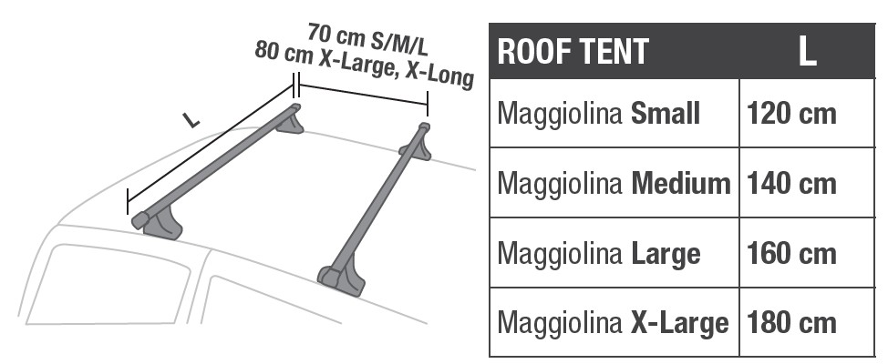 Elle se fixe à l’aide de 4 pattes fournies compatibles avec les barres de toit de dimension 44 x 23 mm de hauteur maximum à insérer dans les deux rails intégrés sous la tente d’une longueur totale de 150 cm. En option, différents kits de fixation sont disponibles afin de s'adapter aux différentes largeurs de barres de toit (65, 72, 85 ou 102 mm de largeur).
