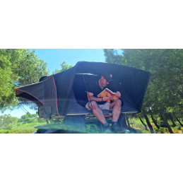 La tente de toit hybride Eclipse est spacieuse, compacte et haut de gamme. Elle est idéale pour les débutants et les petits budgets. Sa modularité et sa praticité d’ouverture semi automatique de type portefeuille, elle vous offre très rapidement un confortable couchage pouvant accueillir 2 adultes et un enfant sur un matelas en mousse haute dentsité de 3.5cm d'épaisseur et housse déhoussable.