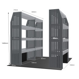 Le rangement métallique MR4 transforme votre fourgon en un espace de travail organisé, robuste et esthétique. Léger, sur mesure et simple à installer, il optimise chaque centimètre pour gagner du temps et de l’efficacité. Il est équipé d'étagères afin d'optimiser le rangement de votre véhicule. Ces meubles s'adaptent parfaitement au Renault Trafic L1H2 à partir de Septembre 2014 et sont à fixer sur les côtés gauche et droit de votre utilitaire.