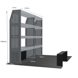 Le rangement métallique MR4 transforme votre fourgon en un espace de travail organisé, robuste et esthétique. Léger, sur mesure et simple à installer, il optimise chaque centimètre pour gagner du temps et de l’efficacité. Il est équipé d'étagères afin d'optimiser le rangement de votre véhicule. Ce meuble s'adapte parfaitement au Renault Trafic L1H2 à partir de Septembre 2014 et est à fixer sur le côté gauche de votre utilitaire.