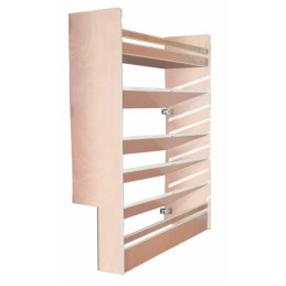 Le meuble comprend 5 étagères inclinées dont 3 interchangeables afin d'optimiser le rangement dans votre véhicule.
